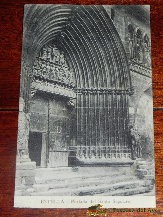 ANTIGUA POSTAL DE ESTELLA, NAVARRA, PORTADA DEL SANTO SEPULCRO, ED. L. PEREZ, NO CIRCULADA.