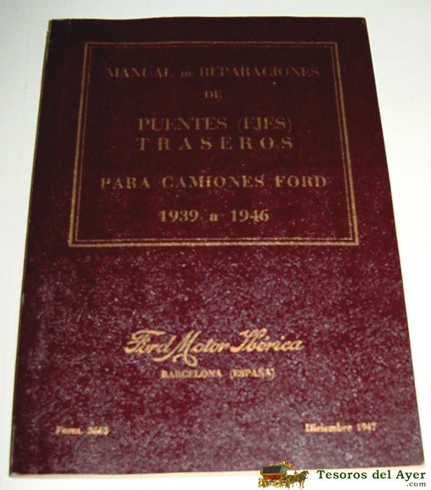 ANTIGUO MANUAL DE REPARACIONES DE CAMIONES FORD 1939 A 1946 - FORD MOTOR IBERICA - DICIEMBRE 1947 - REPARACIONES DE PUENTES EJES TRASEROS - 87 PAGINAS, CON MUCHAS ILUSTRACIONES - MIDE 21 X 15 CMS.