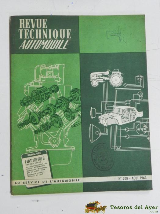 REVUE TECHNIQUE AUTOMOBILE, MECANICA, RESTAURACION, FIAT 600 - 600 D, N. 208, AGOSTO DE 1963, 74 PAG. APROX. MIDE 27 X 21 CMS. ESCRITA EN FRANCES.