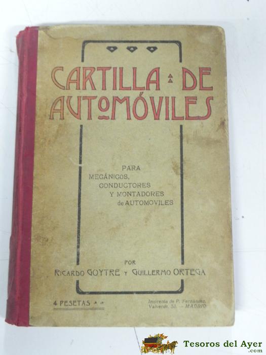 CARTILLA DE AUTOMóVILES PARA MECáNICOS, CONDUCTORES Y MONTADORES DE AUTOMOVILES, POR RICARDO GOYTRE Y GUILLERMO ORTEGA, P. FERNáNDEZ, MADRID. CARTONé. ESTADO DE CONSERVACIóN: BUENO. CARTONé EN BUEN ESTADO. MIDE 20 X 14,5 CMS. PáG 277, NO PONE FECHA, PERO