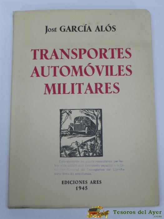 ANTIGUO LIBRO TRANSPORTES AUTOMOVILES MILITARES. COMANDANTE DE INGENIERO J. GARCIA ALOS 1945. ED. ARES. TIENE 301 PAG. MIDE 23 X 17 CMS.