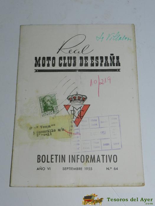 BOLETIN INFORMATIVO REAL MOTO CLUB DE ESPAÑA - SEPTIEMBRE DE 1955 - N. 64 - FORMATO: 21X16 CM. TIENE 32 PAG.