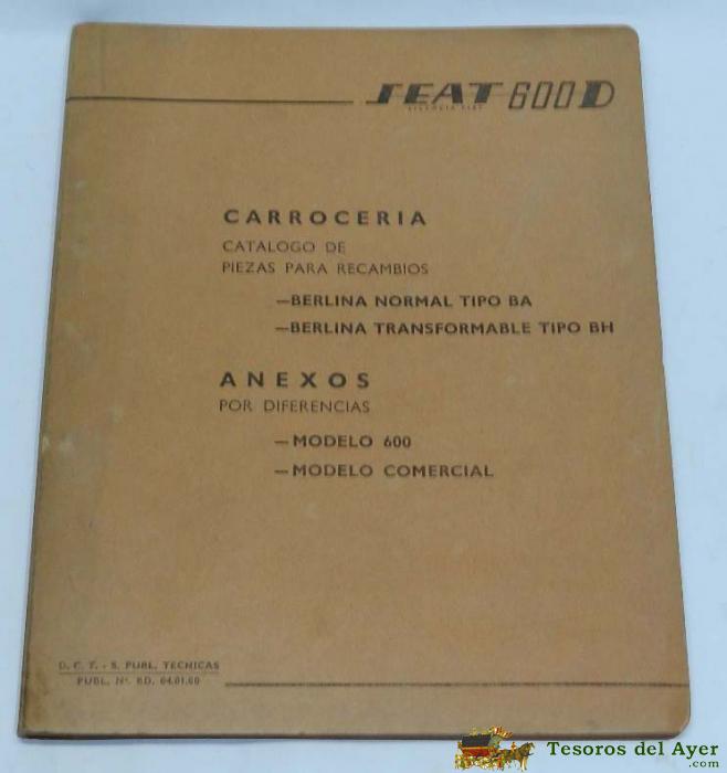 SEAT 600 D - CATALOGO DE PIEZAS PARA RECAMBIOS - AÑO 1964 - BERLINA NORMAL TIPO BA, BERLINA TRANSFORMABLE TIPO BH, MODELO 600, MODELO COMERCIAL, CON ANEXO - 77 PAG. MIDE 28,5 X 22,5 CMS.