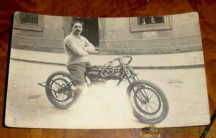 ANTIGUA FOTO POSTAL DE HOMBRE CON SU MOTO - NO CIRCULADA.