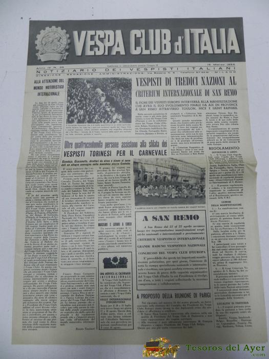 VESPA CLUB D´ITALIA, NOTICIARIO DEL VESPISTA ITALIANO, N. 35, MARZO DE 1955, CON MUCHISIMAS FOTOGRAFIAS, 4 PAG, MIDE 42 X 29,5 CMS.
