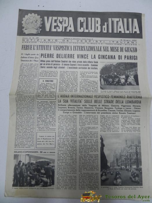 VESPA CLUB D´ITALIA, NOTICIARIO DEL VESPISTA ITALIANO, N. 38, JUNIO DE 1955, CON MUCHISIMAS FOTOGRAFIAS, 4 PAG, MIDE 42 X 29,5 CMS.