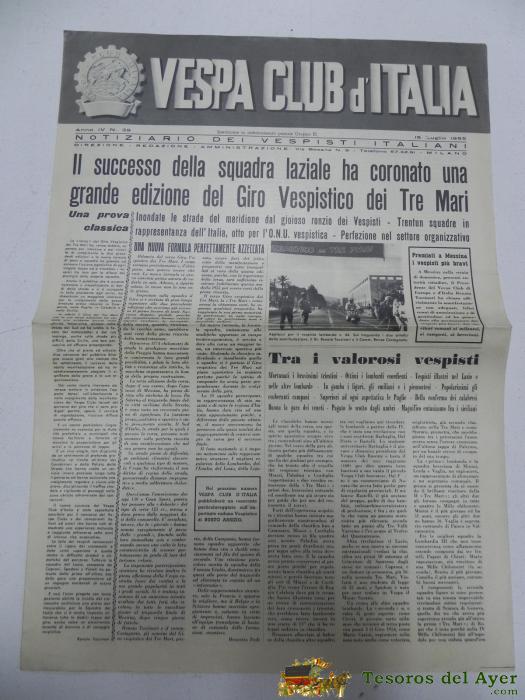 VESPA CLUB D´ITALIA, NOTICIARIO DEL VESPISTA ITALIANO, N. 39, JULIO DE 1955, CON MUCHISIMAS FOTOGRAFIAS, 4 PAG, MIDE 42 X 29,5 CMS.