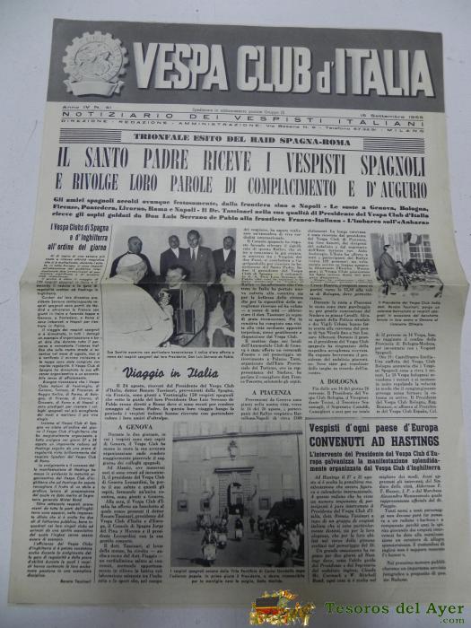 VESPA CLUB D´ITALIA, NOTICIARIO DEL VESPISTA ITALIANO, N. 41, SEPTIEMBRE DE 1955, CON MUCHISIMAS FOTOGRAFIAS, 4 PAG, MIDE 42 X 29,5 CMS.