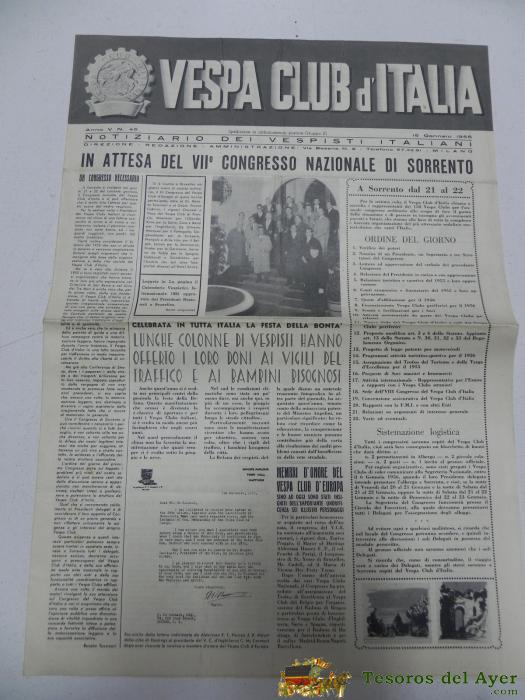 VESPA CLUB D´ITALIA, NOTICIARIO DEL VESPISTA ITALIANO, N. 45, ENERO DE 1956, CON MUCHISIMAS FOTOGRAFIAS, 4 PAG, MIDE 42 X 29,5 CMS.