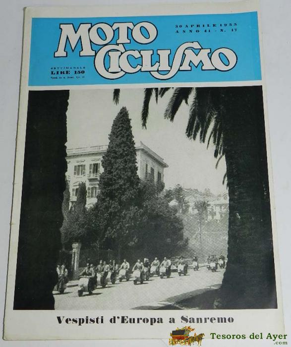 REVISTA MOTOCICLISMO - N. 17 - 30 ABRIL DE 1955, VESPA CLUB DE EUROPA - GRAN CRITERIUM VESPISTICO DE SAN REMO, 78 PAG, MIDE 28 X 21 CMS. ESCRITA EN ITALIANO.