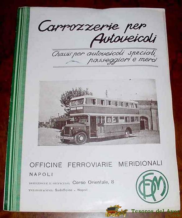 ANTIGUO CATALOGO DESPLEGABLE DE CARROCERIAS PARA VEHICULOS - NAPOLES - TRIPTICO - AUTOBUS, TROLEBUS, CAMION, COCHE - CARROZZERIE PER AUTOVEICOLI- OFFICINE FERROVIARIE MERIDIONALI - NAPOLI - UNA PIEZA DE MUSEO - MIDE DESPLEGADO 67 X 30,5 CMS.