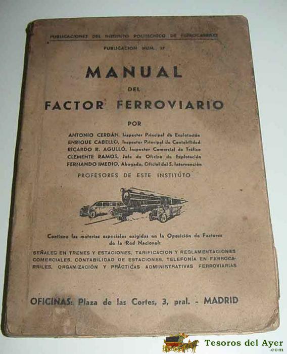 MANUAL DEL FACTOR FERROVIARIO. INSTITUTO POLITéCNICO DE FERROCARRILES MADRID ESPAñA. RúSTICA. 248 PáGINAS, CON ILUSTRACIONES