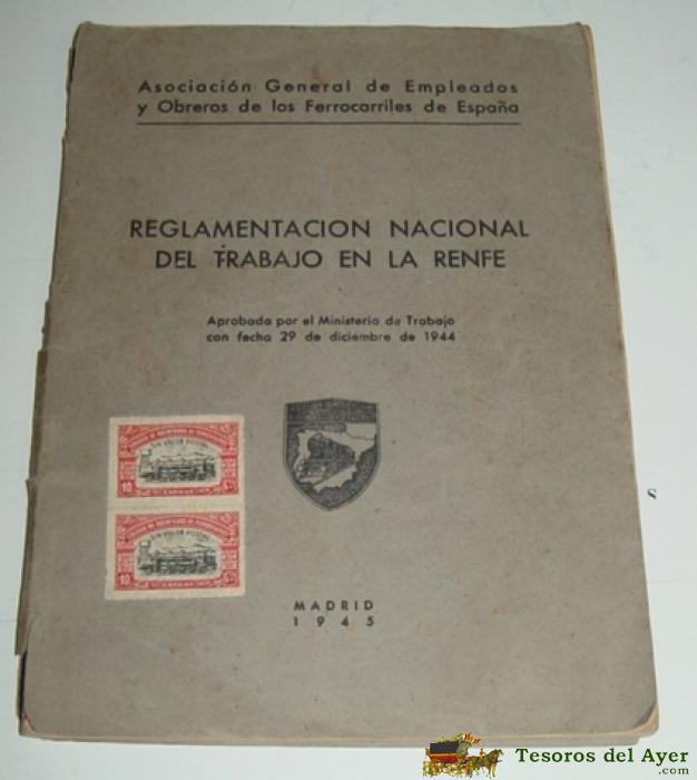 REGLAMENTACION NACIONAL DEL TRABAJO EN LA RENFE - MADRID 1945 - ASOC. GRAL. DE EMPLEADOS FERROCARRIL DE ESPAÑA - 112 PAGINAS - MIDE 21 X 15,5 CMS.