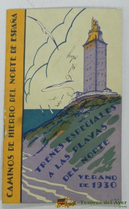 CAMINOS DE HIERRO DEL NORTE. SERVICIOS DE BAÑOS DE MAR. TRENES ESPECIALES Y ORDINARIOS. VERANO, 1930 FOLLETO. TRENES. IMP. HIJOS DE E. MINUESA. MADRID (MADRID A CORUñA Y GIJóN; MADRID A SANTANDER, ETC.) 20 PAG. 13 FOTOGRAFíAS. RúSTICA EDITORIAL ILUSTRADA