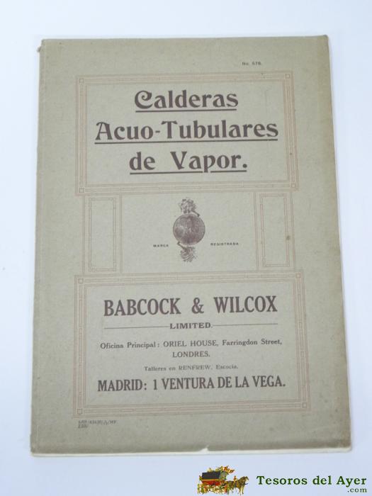 ANTIGUO LIBRO CALDERAS ACUO-TUBULARES DE VAPOR, BABCOCK & WILCOX, PUBLICACION PARA LAS OFICINAS DE ESPAÑA, VENTURA DE LA VEGA MADRID, CATALOGO DE LAS DISTINTAS CALDEREAS Y SU FUNCIONAMENTO, TREN, LOCOMOTORA, 43 PAG. NO PONE FECHA AÑO 1910 APROX. MIDE 26 X
