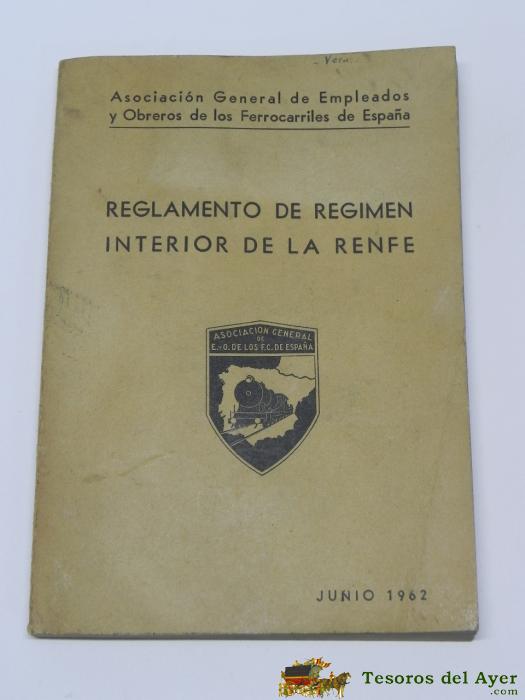 REGLAMENTO DE REGIMEN INTERIOR DE LA RENFE, ASOCIACION GENERAL DE EMPLEADOS Y OBREROS DE LOS FERROCARRILES DE ESPAÑA, JUNIO 1962, TIENE 245 PAGINAS Y MIDE 21,5 X 15,5 CMS.