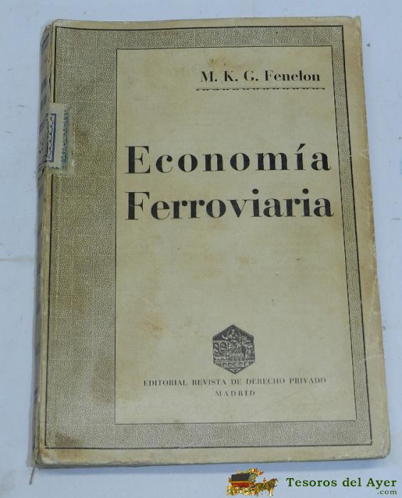 LIBRO ECONOMÍA FERROVIARIA - POR M.K.G. FENELON - AÑO 1934 - 287PAG - MIDE 20 X 14,5 CMS.