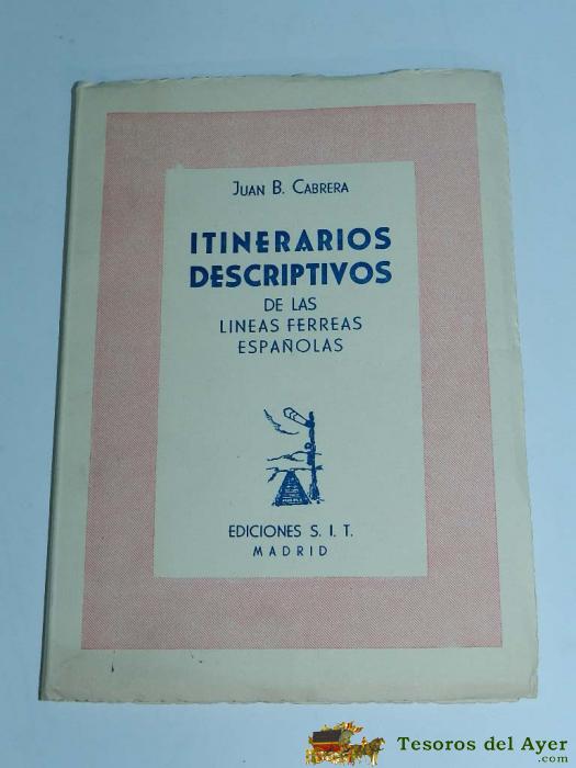 ITINERARIOS DESCRIPTIVOS DE LAS LINEAS FERREAS ESPAñOLAS. POR CABRERA, JUAN B, ED. SIT, AñO 1956, TIENE 73 PAG, MIDE 20 X 14 CMS.