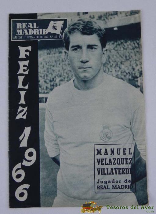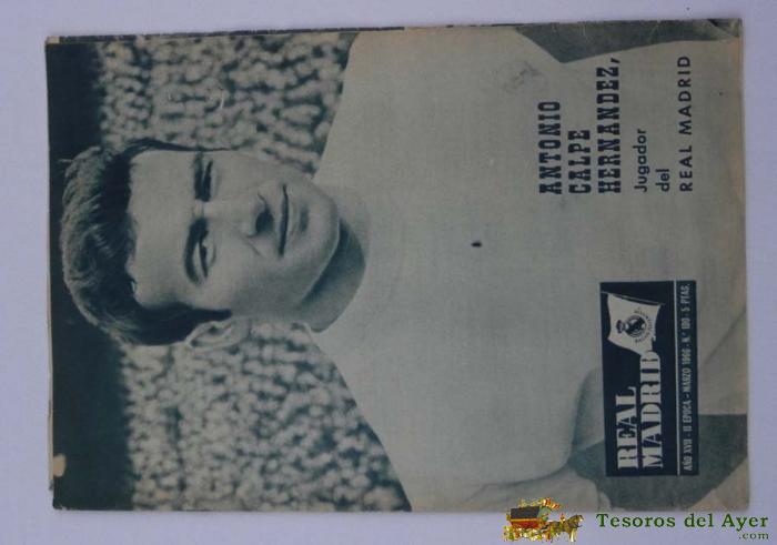 ANTIGUA REVISTA DEL REAL MADRID - FUTBOL - MARZO 1966 - Nº 190 - ANTONIO CALPE HERNANDEZ EN PORTADA - MIDE 31 X 21,5 CMS - DEPORTE, FUTBOL - BALONCESTO - 32 PAG. APROX