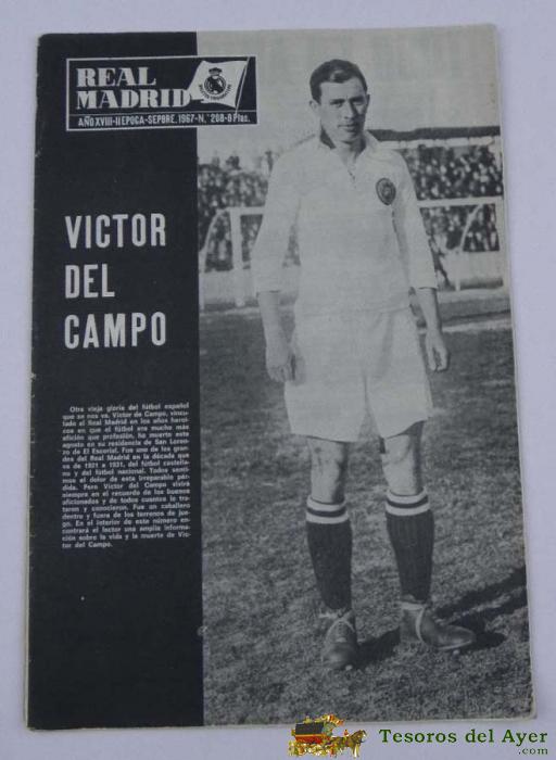 REVISTA DEL REAL MADRID Nº 208, SEPTIEMBRE 1967, VICTOR DEL CAMPO EN PORTADA, EXCELENTE ESTADO DE CONSERVACION, 32 PAGINAS, MIDE 31 X 22 CMS.