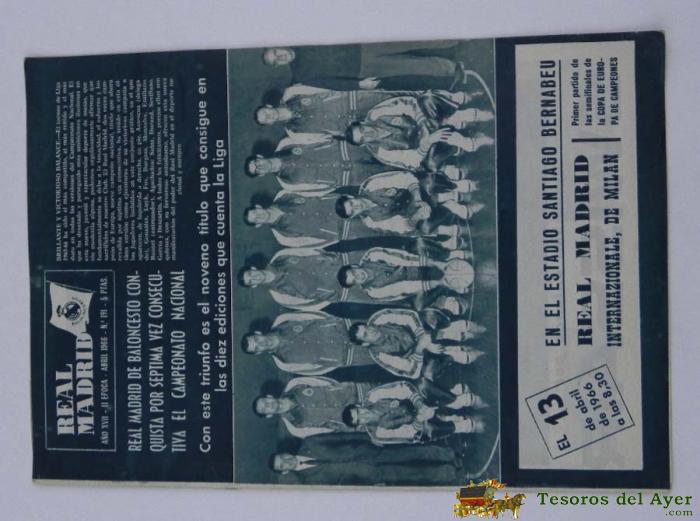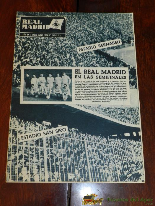 ANTIGUA REVISTA DEL REAL MADRID - FUTBOL - MARZO 1964 - Nº 166 - MIDE 31 X 21,5 CMS - MILAN A.C. - DEPORTE, FUTBOL - BALONCESTO - 32 PAG. APROX.