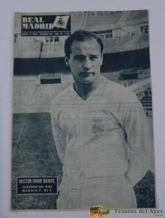 ANTIGUA REVISTA DEL REAL MADRID - FUTBOL - NOVIEMBRE 1958 - Nº 100 - EN PORTADA HECTOR OMAR RAMOS, EL REAL MADRID GOLEO AL OSASUNA POR 8 A 0 - BALONCESTO - MIDE 31 X 21,5 CMS - DEPORTE, FUTBOL - 32 PAG. APROX. - EL BESIKTAS JIMNASTIK DE ESTAMBUL