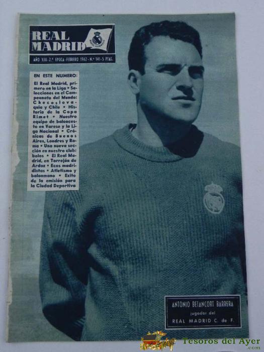 ANTIGUA REVISTA DEL REAL MADRID Nº 141 - FEBRERO 1962 - 30 PAGINAS - 31 X 21,50 CMS. - FUTBOL - DEPORTE.