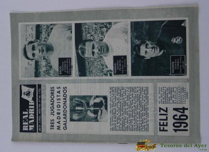 ANTIGUA REVISTA DEL REAL MADRID - FUTBOL - ENERO 1964 - Nº 164 - MIDE 31 X 21,5 CMS - DEPORTE, FUTBOL - BALONCESTO - 32 PAG. APROX.