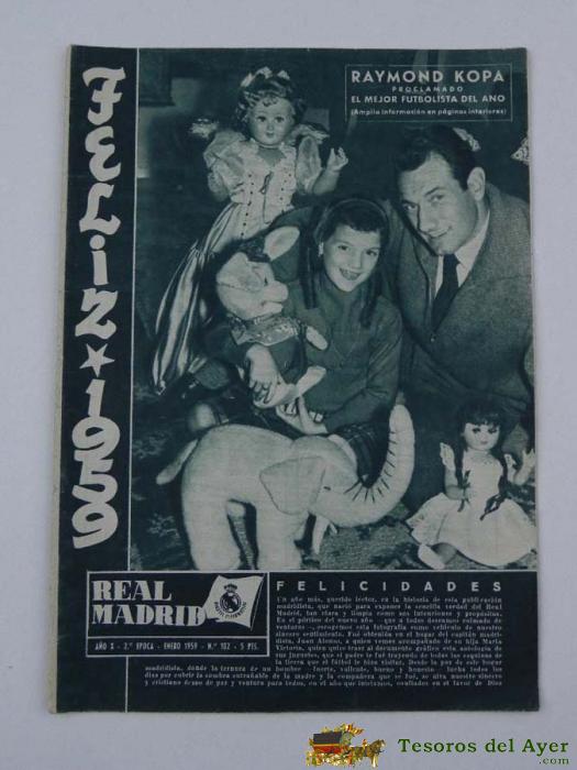 ANTIGUA REVISTA DEL REAL MADRID, NUMERO 102, ENERO 1959, KOPA EN PORTADA, TIENE 32 PAGS. MUCHAS FOTOS, DEPORTE FUTBOL.