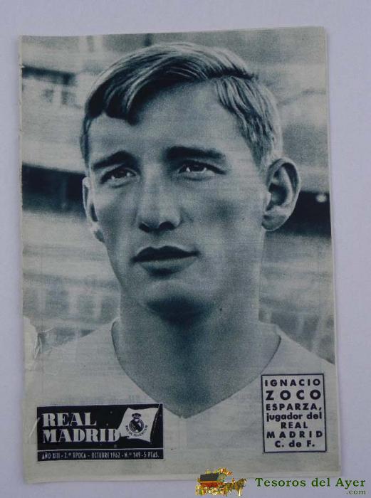 REVISTA REAL MADRID 149 OCTUBRE 1962, EN PORTADA ZOCO, VIII COPA DE EUROPA ELIMINADO POR ANDERLECHTOIS.