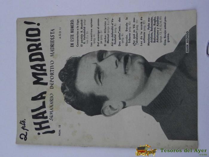 ANTIGUO Y RARISIMO SEMANARIO DEPORTIVO MADRIDISTA, REAL MADRID, FUTBOL - ¡HALA MADRID! NUM. 18 - AÑO II - 12 DE FEBRERO 1952 - REAL MADRID, TIENE 18 PAGINAS INCLUYENDO LAS CUBIERTAS EN LA PORTADA JUAN ALONSO - MIDE 29 X 21 CMS.