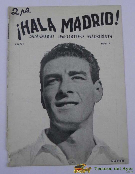 ¡HALA MADRID! NUM. 5, AÑO I, 10 DE NOVIEMBRE DE 1951, REAL MADRID, ANTIGUO SEMANARIO DEPORTIVO MADRIDISTA, FUTBOL TIENE 18 PAGINAS INCLUYENDO LAS CUBIERTAS, MIDE 29 X 21 CMS. MUY RARO.