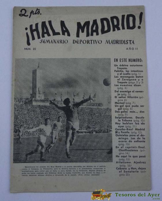 ANTIGUO Y RARISIMO SEMANARIO DEPORTIVO MADRIDISTA, REAL MADRID, FUTBOL - ¡HALA MADRID! NUM. 22 - AÑO II - 11 MARZO 1952 - REAL MADRID, TIENE 18 PAGINAS INCLUYENDO LAS CUBIERTAS - MIDE 29 X 21 CMS