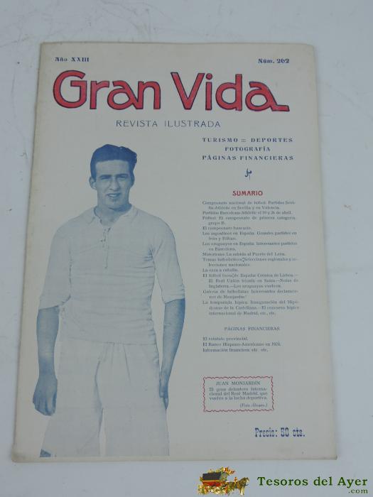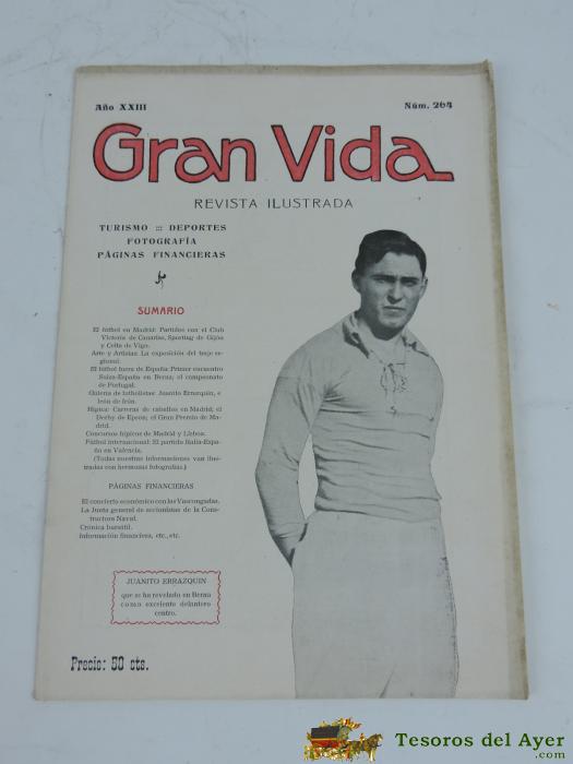 ANTIGUA REVISTA GRAN VIDA, REVISTA ILUSTRADA TURISMO, DEPORTE, FOTOGRAFIA, JUNIO DE 1925, NUM. 264, EN PORTADA JUANITO ERRAZQUIN, EQUIPO DEL VICTORIA F.C. DE LAS PALMAS, CARRERAS DE CABALLOS EN MADRID, EXPOSICION DEL TRAJE REGIONAL, TIENE 28 PAGINAS APROX