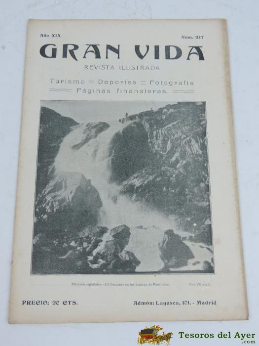 ANTIGUA REVISTA GRAN VIDA, NUM. 217, REVISTA ILUSTRADA TURISMO, DEPORTE, FOTOGRAFIA, JULIO DE 1921, CARRERAS DE CABALLOS EN SANTANDER, LA REINA VICTORIA EUGENIA EN EL HIPODROMO DE SANTANDER.TIENE 28 PAGINAS APROX, MIDE 24 X 17 CMS.
