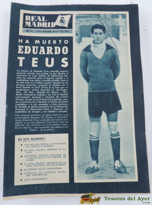 REVISTA OFICIAL REAL MADRID, Nº 138, NOVIEMBRE 1961, EDUARDO TEUS, TIENE 32 PGS. PROFUSAMENTE ILUSTRADAS Y CON PUBLICIDAD DE LA EPOCA.