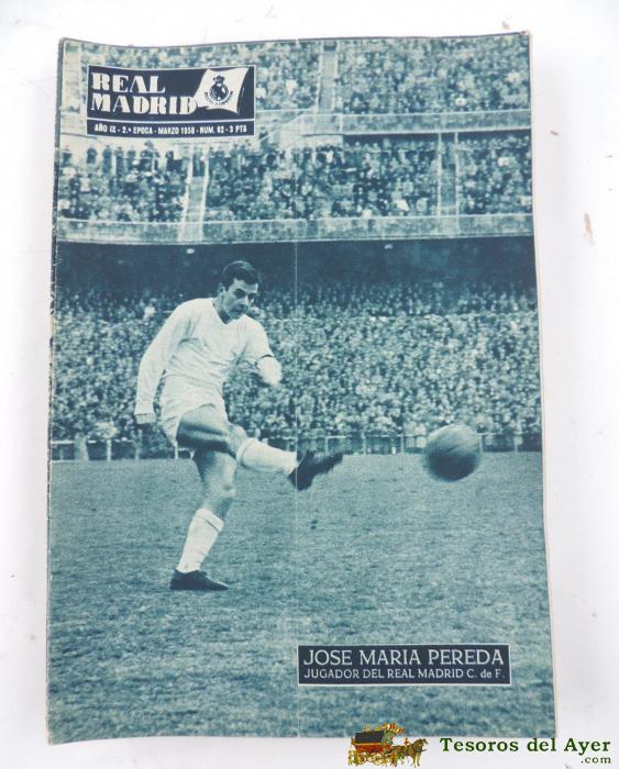 ANTIGUA REVISTA DEL REAL MADRID - FUTBOL - MARZO 1958 - Nº 92 - JOSE MARIA PEREDA EN PORTADA - MIDE 31 X 21,5 CMS - DEPORTE, FUTBOL - BALONCESTO - 32 PAG. APROX.
