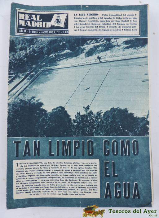 ANTIGUA REVISTA DEL REAL MADRID Nº 97 - AGOSTO 1958 - TIENE 16 PAGINAS - MIDE 31 X 22 CMS. EXCELENTE ESTADO DE CONSERVACION.