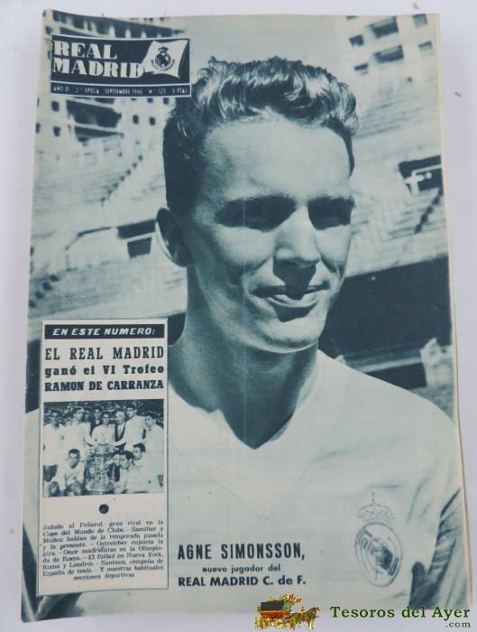 ANTIGUA REVISTA DEL REAL MADRID - FUTBOL - SEPTIEMBRE DE 1960 - Nº 123 - CAMPEON DEL VI TROFEO RAMON DE CARRANZA, EN PORTADA AGNE SIMONSSON - MIDE 31 X 21,5 CMS - DEPORTE, FUTBOL - BALONCESTO - 32 PAG. APROX.