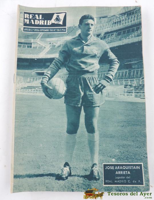 ANTIGUA REVISTA DEL REAL MADRID - FUTBOL - SEPTIEMBRE 1961 - Nº 136 - EN PORTADA JOSE ARAQUISTAN ARRIETA - MIDE 31 X 21,5 CMS - DEPORTE, FUTBOL - BALONCESTO - 32 PAG. APROX.
