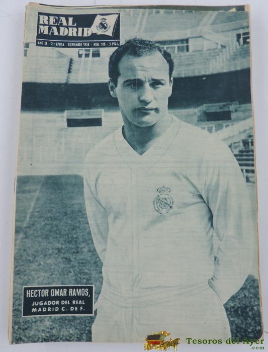ANTIGUA REVISTA DEL REAL MADRID - FUTBOL - NOVIEMBRE 1958 - Nº 100 - HECTOR OMAR RAMOS EN PORTADA - MIDE 31 X 21,5 CMS - DEPORTE, FUTBOL - BALONCESTO - 32 PAG. APROX - HA ESTADO ENCUADERNADA.