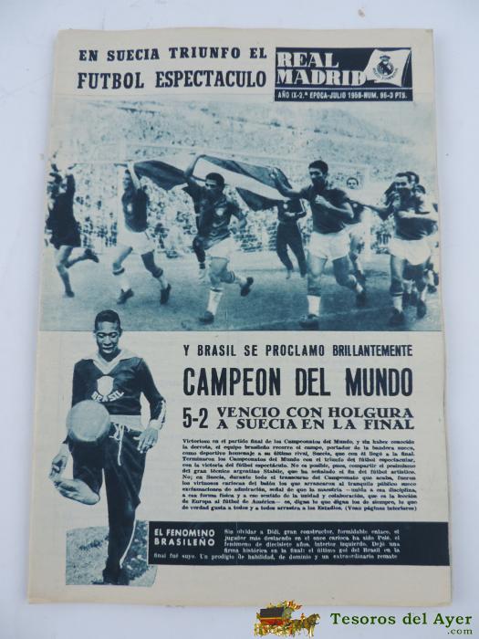 NTIGUA REVISTA DEL REAL MADRID Nº 96 - JULIO 1958 - 32 PAGINAS - MIDE 31 X 22 CMS. - MUCHISIMAS FOTOS