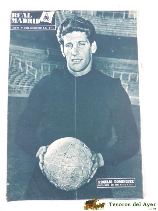 ANTIGUA REVISTA DEL REAL MADRID - FUTBOL - OCTUBRE DE Nº 87 - ROGELIO DOMINGUEZ GUARDAMETA DEL REAL MADRID C.F. - BALONCESTO - MIDE 31 X 21,5 CMS - DEPORTE, FUTBOL - 32 PAG. APROX.