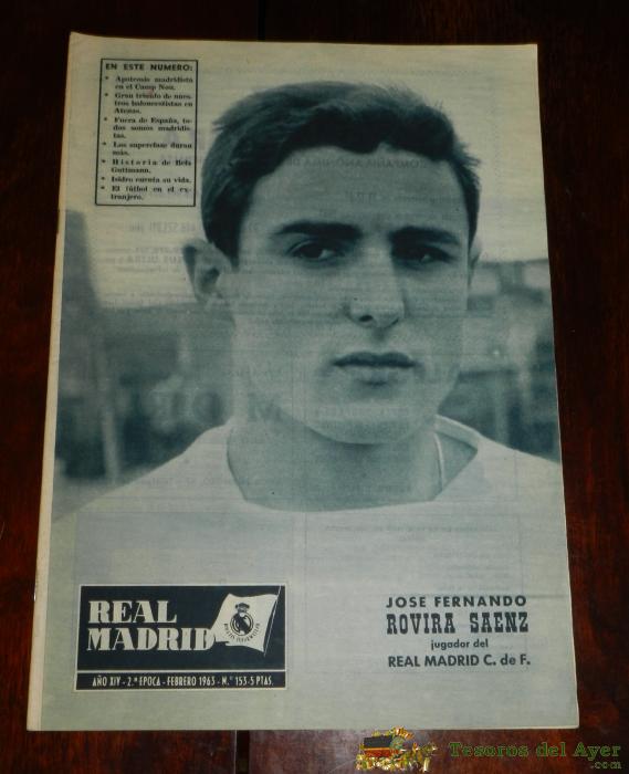 REVISTA OFICIAL REAL MADRID, Nº 153, FEBRERO 1963, JOSE FERNANDO ROVIRA SAENZ, TIENE 32 PGS. PROFUSAMENTE ILUSTRADAS Y CON PUBLICIDAD DE LA éPOCA.