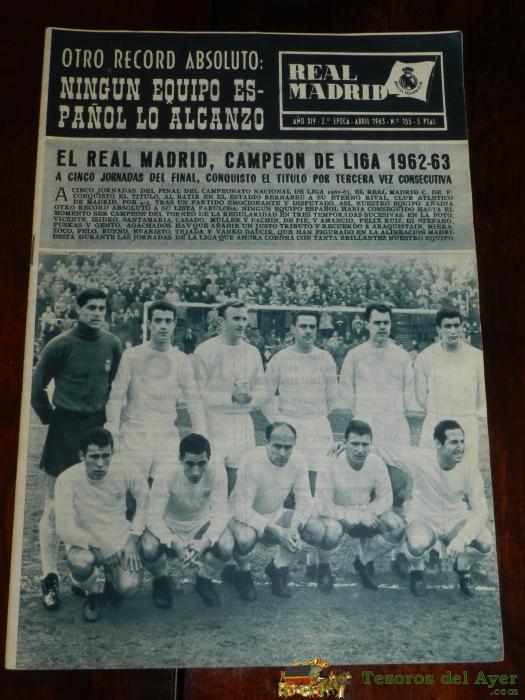 REVISTA OFICIAL REAL MADRID, Nº 155, ABRIL 1963, TIENE 32 PGS. PROFUSAMENTE ILUSTRADAS Y CON PUBLICIDAD DE LA éPOCA.
