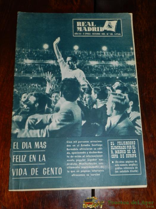 ANTIGUA REVISTA DEL REAL MADRID - FUTBOL - OCTUBRE DE 1965 - Nº 185 - GENTO EN PORTADA, EL FEIJENOORD ELIMINADO POR EL R. MADRID DE LA COPA DE EUROPA - MIDE 31 X 21,5 CMS - DEPORTE, FUTBOL - BALONCESTO - 32 PAG. APROX