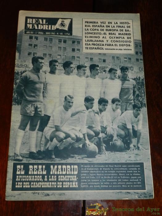 REVISTA OFICIAL REAL MADRID, Nº 145, JUNIO 1962, TIENE 32 PGS. PROFUSAMENTE ILUSTRADAS.