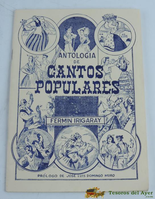 ANTOLOGÍA DE CANTOS POPULARES. POR IRIGARAY FERMíN. 1961, PRóLOGO DE JOSE LUIS DOMINGO MURO. TIENE 103 CANCIONES POPULARES CON SU LETRA Y MúSICA. 48 PáGS. MIDE 24 X 17 CMS.