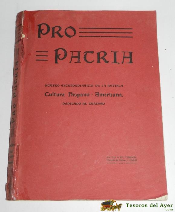 PRO PATRIA. NúMERO EXTRAORDINARIO DE LA REVISTA CULTURA HISPANO AMERICANA, DEDICADO AL TURISMO. EST. TIP. DE EL LIBERAL, MADRID, 1913. 1ª ED. MIDE 20.5 X 28.5 CMS. CON 349 PP. MáS ANUNCIOS. MUY ILUS CON FOTOS DE TODAS LAS PROVINCIAS ESPAñOLAS. TEXTOS DE