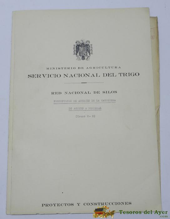 MINISTERIO DE AGRICULTURA, SERVICIO NACIONAL DEL TRIGO, RED NACIONAL DE SILOS, PRESUPUESTO DE ARREGLO DE LA CARRETERA DE ACCESO A BERBEGAL - HUESCA, PROYECTOS Y CONSTRUCCIONES, GRAN PLANO DESPLEGABLE 160 X 52 CMS. + 7 HOJAS DE LA MEMORIA.